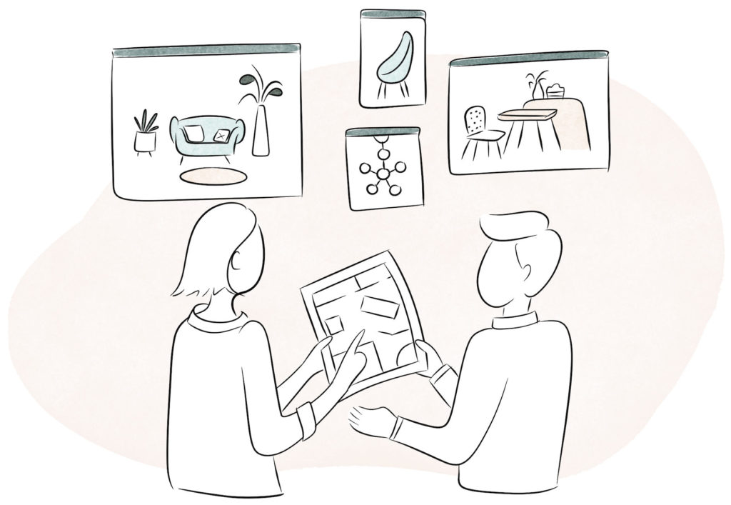 Je mène une recherche approfondie pour proposer des mobiliers et accessoires en parfaite cohérence avec les moodboards, les matériaux et les couleurs retenus.